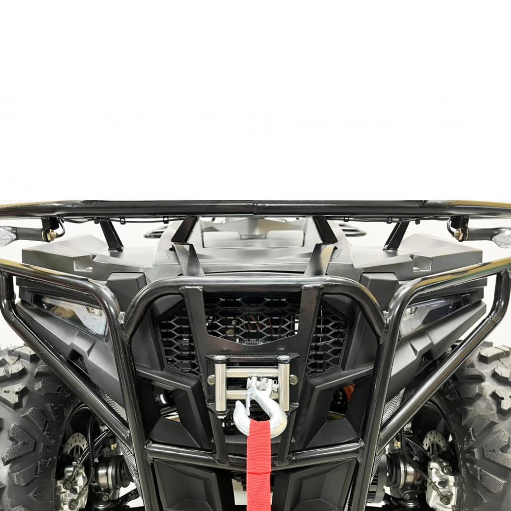Двигатель квадроцикла – это высокоэффективный PMSM мотор мощностью 10 кВт, который обеспечивает динамичное ускорение и плавное распределение мощности. Максимальная скорость достигает 70 км/ч, что позволяет уверенно передвигаться как по проселочным дорогам, так и по легкому бездорожью, а максимальная нагрузка в 200 кг открывает широкие возможности для перевозки пассажиров и грузов. Дополнительные опции, такие как фаркоп и лебедка, значительно расширяют функциональные возможности транспортного средства, делая его незаменимым помощником в самых разнообразных ситуациях.