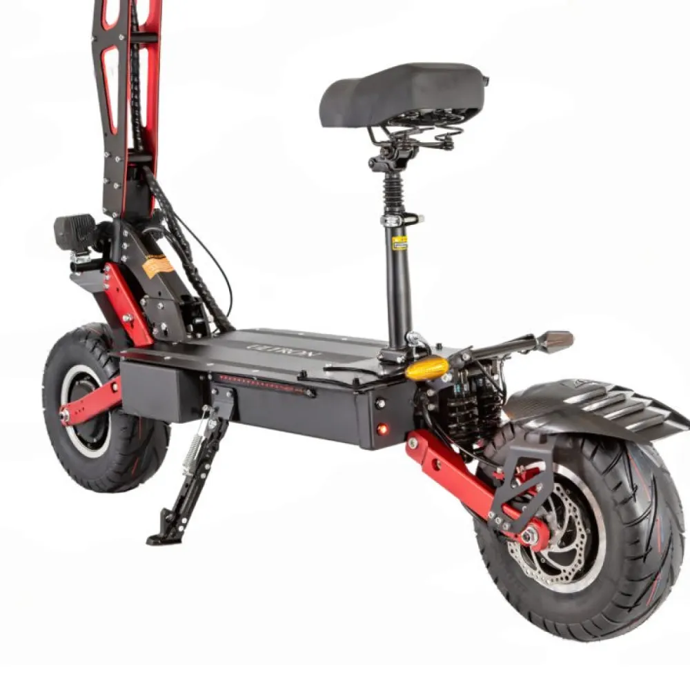 Покупая технику, внимательно ознакомьтесь с техническими характеристиками. Она мощная, требует соблюдения правил безопасности езды. Мощность одного мотор-колеса составляет 6000 Вт. Проверенные 13-дюймовые колеса готовы преодолеть препятствия, развить скорость до 90 км. Электросамокат стал сюрпризом для опытных ездоков!