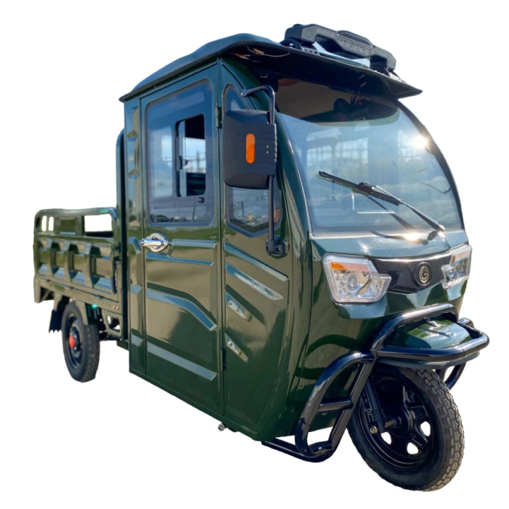 Электротрицикл грузовой GreenCamel Тендер D1500 (60V 1000W) кабина, понижающая темно-зеленый