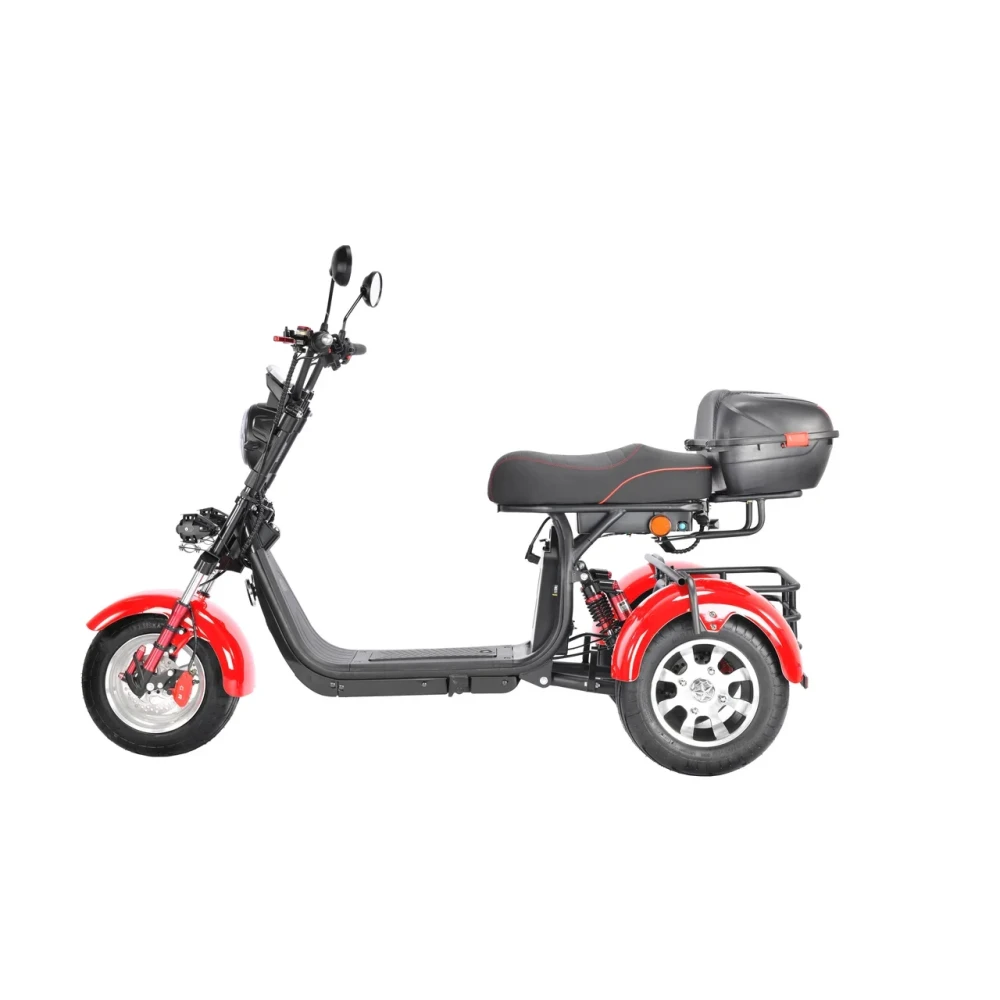 Трехколесный скутер CityCoco WS-Pro 3000W Trike+ красный - быстрый городской транспорт с литыми дисками и широкими колесами.