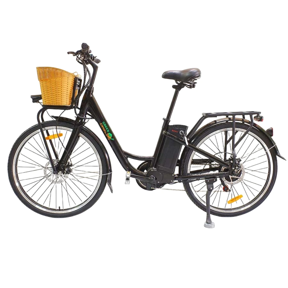 Электровелосипед Грин Кэммэл Бриз (R26 350 Вт 36V 10Ah), шестискоростной классически черный – шикарный городской круизер с высокими показателями комфорта. Предназначен для движения по ровной дороге и парковой зоны. Оснащен объемной передней корзиной, удобной для поездок за продуктами, на базар, вылазки. Приобрести супертехнику по разумной стоимости предлагает наш интернет-магазин.