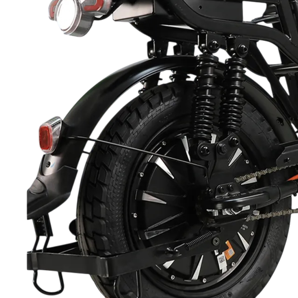 Прочная стальная рама обеспечивает долговечность и устойчивость конструкции, а мощный двигатель на 1200 Вт гарантирует отличную динамику и уверенное движение даже по сложному рельефу. Благодаря двум аккумуляторным батареям ёмкостью по 20 Ah, велосипед способен проехать до 60 км на одном заряде, а полная зарядка занимает около 7 часов.