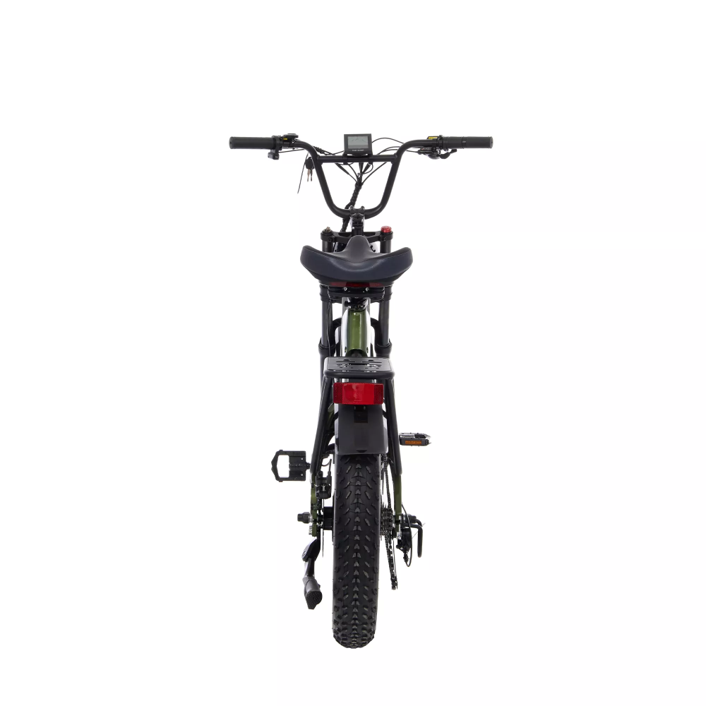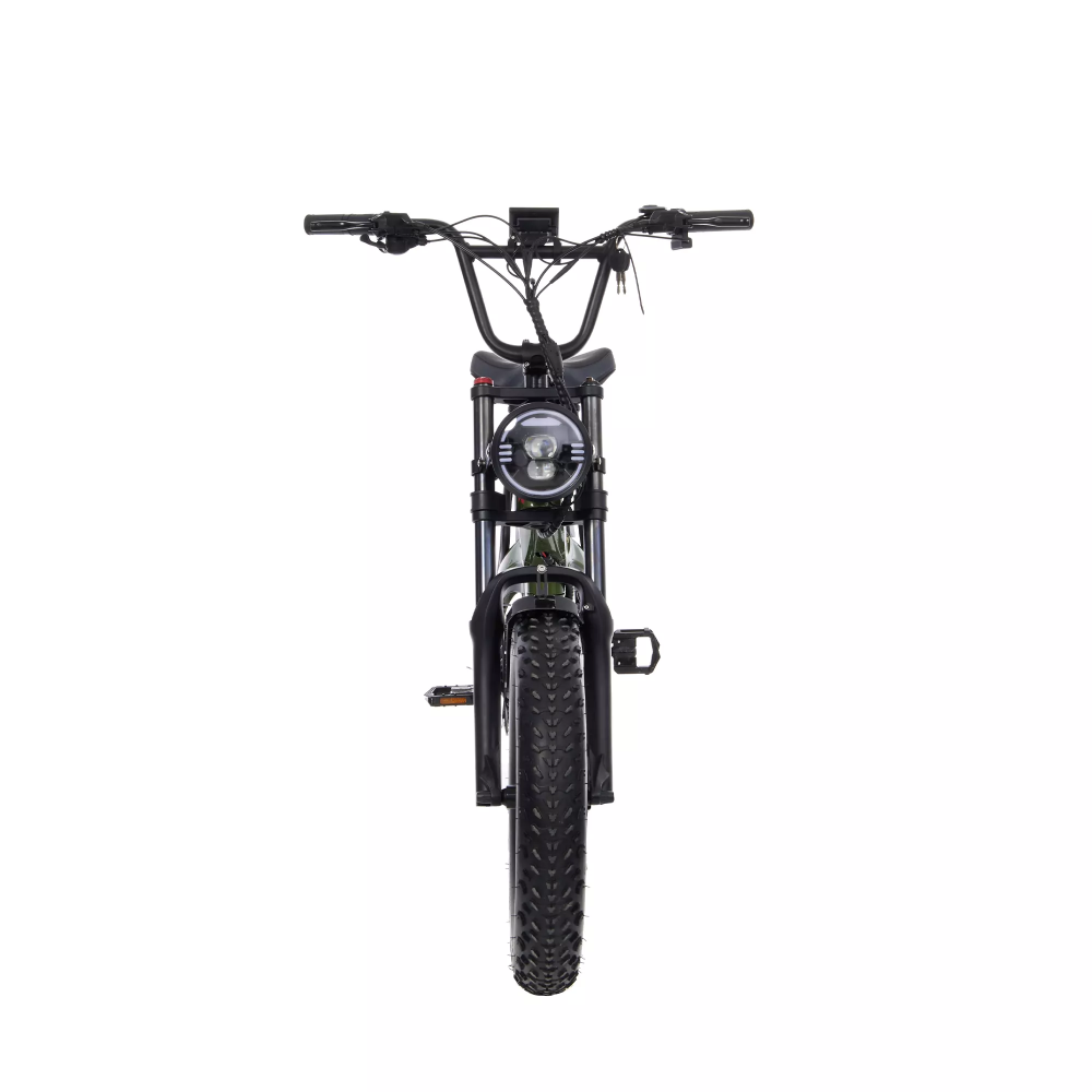 В дизайне присутствуют камуфляжные элементы, которые добавляют байку уникальности и характера. Большая фара спереди обеспечивает отличное освещение дороги, а задний багажник позволяет удобно перевозить грузы.