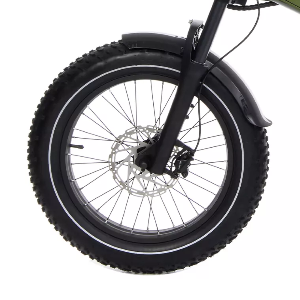 Амортизаторы спереди и сзади обеспечивают комфортную езду на любом покрытии. 20-дюймовые колеса и рама из алюминия обеспечивают устойчивость и прочность конструкции. Аккумулятор емкостью 20Ah 48V обеспечивает долгий пробег и минимизирует время подзарядки.