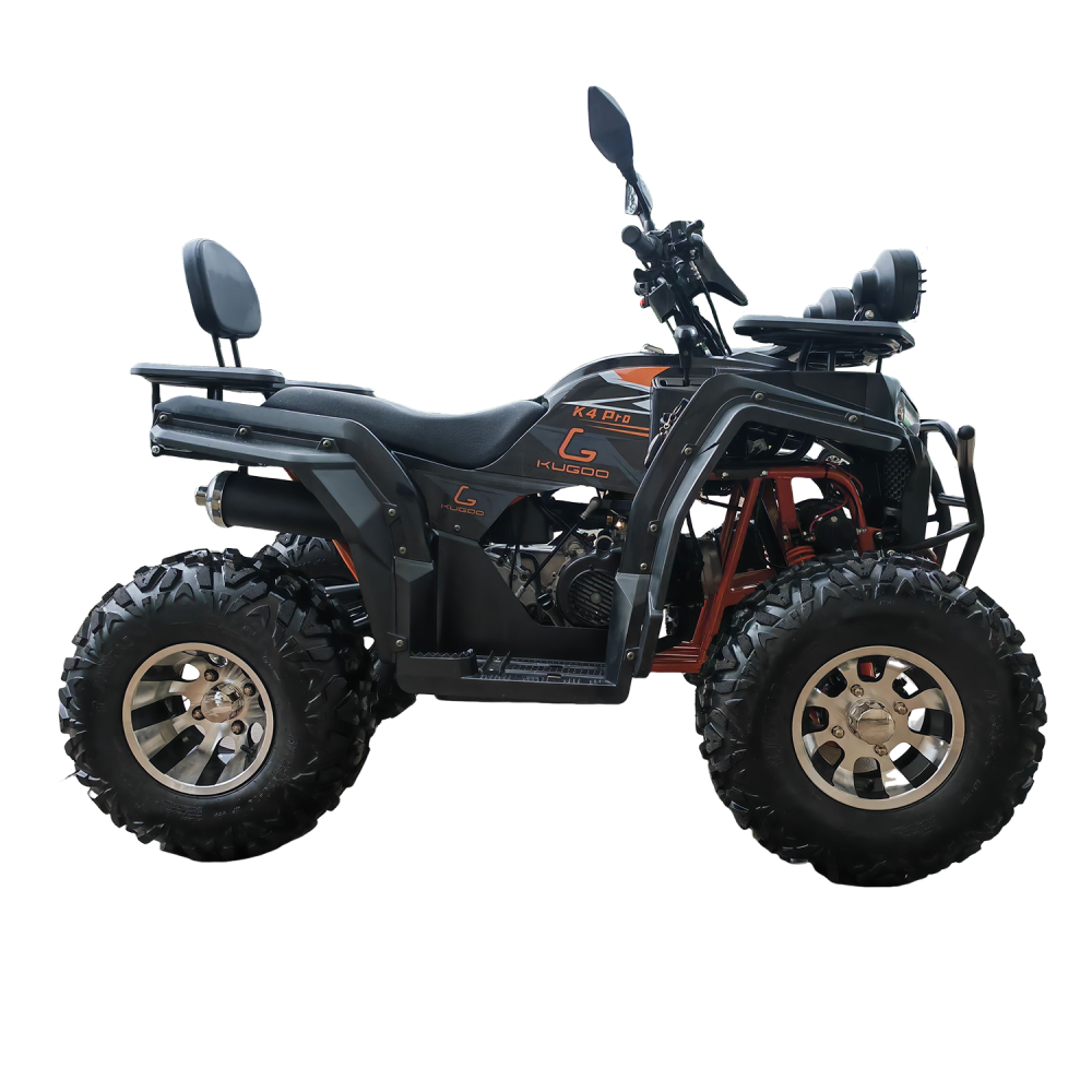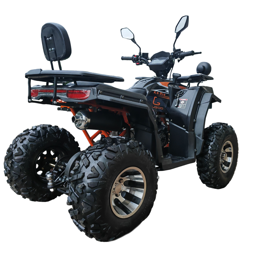 Kugoo K4 PRO — это не просто квадроцикл, а универсальный инструмент для тех, кто ценит надёжность, скорость и проходимость. Построенный на прочной раме, с высоким клиренсом 160 мм и внушительным дорожным просветом, он готов к покорению пересечённой местности, песчаных дюн, лесных троп и каменистых подъёмов.